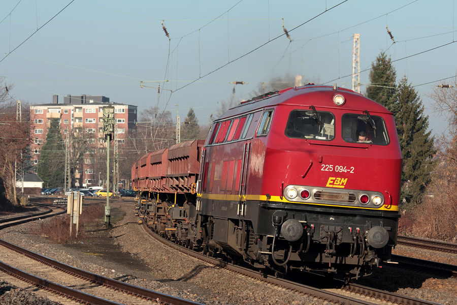 Schon lange ist mir keine Lok der Baureihe 225 mehr vor die Linse gefahren. Am 31.01.2014 war es dann wieder soweit: Die 225 094 der EBM Cargo passierte Eschweiler mit einem Schotterzug in Richtung Köln. Fotostelle