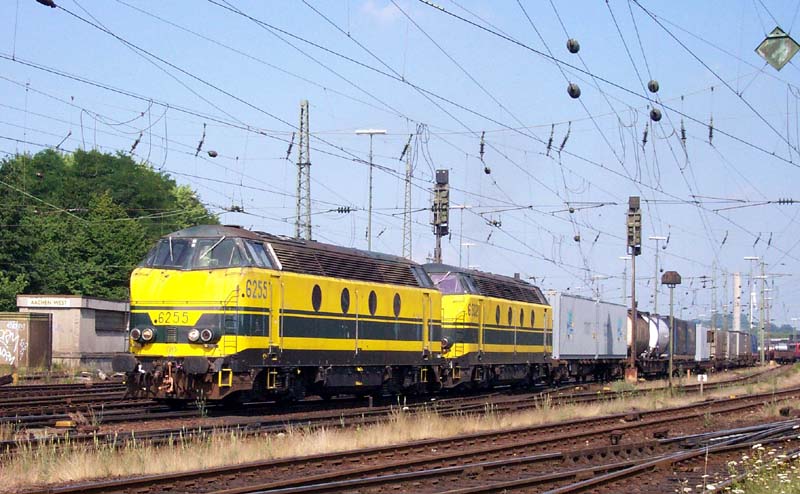 Für eine kurze Zeit erreichte die belgische Baureihe 62 Aachen. Scheinbar wurden durch sie Leistungen ersetzt, die bis dahin von Loks der Baureihe 51 erbracht wurden. Eingesetzt wurden sie ausschließlich in Doppeltraktion. Nur kurze Zeit nach dem Foto wurden die 62er nicht mehr in Aachen gesichtet.